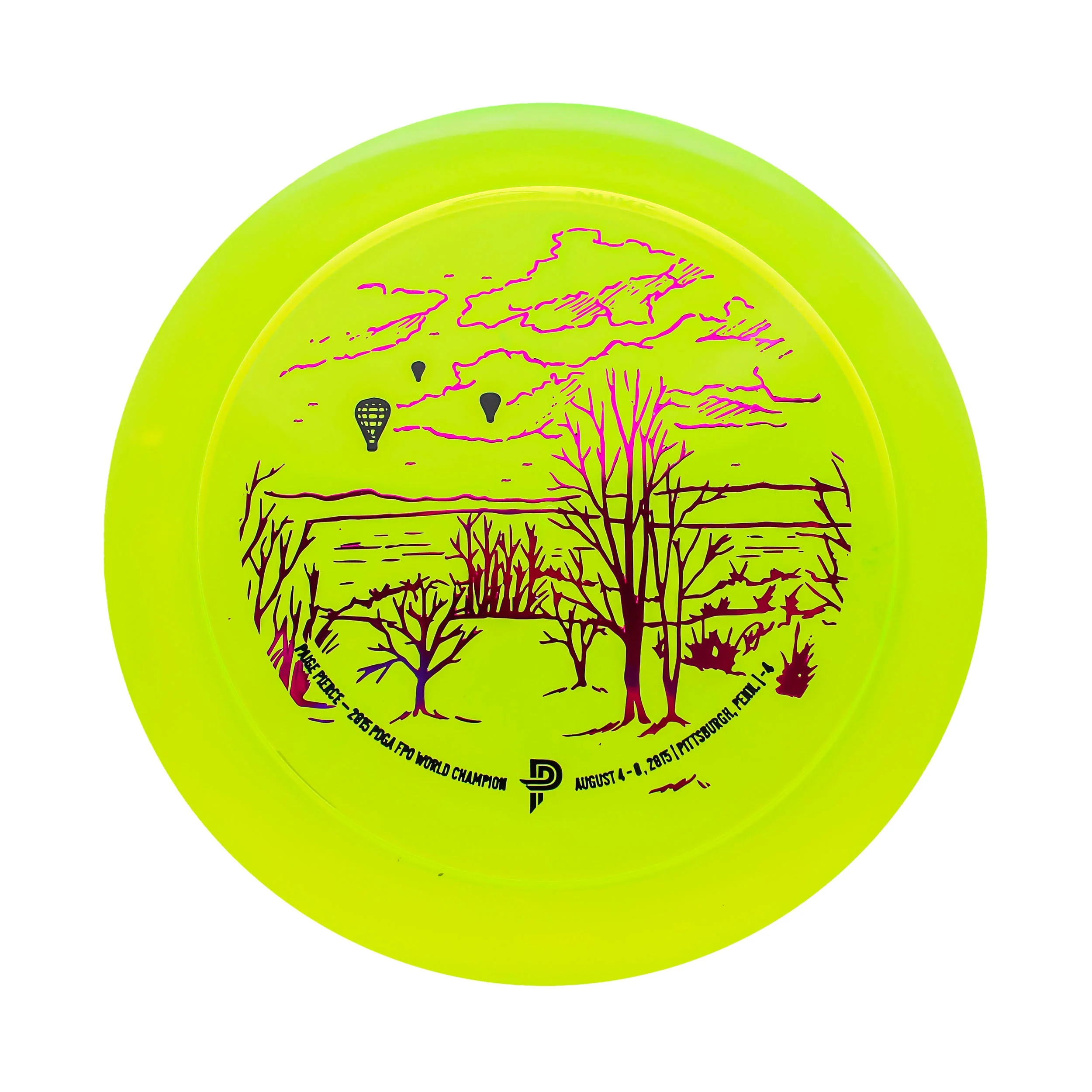 The Nuke is one of the longest pierce-discs in the game and has insane power. The Nuke is a 13 speed driver that is the preferred long range driver for 5X World Champion Paige Pierce. These. Things. Crush. This disc will not guarantee you Paige power but it may get you close. These CryZtal Nukes were part of a Limited Edition set release commemorating all 5 of Paige's World titles. For each of Paige's World titles we are releasing an outdoor scene from the venue from her World Titles. With the Nuke we are showcasing her 2015 World Championship in Pittsburgh PA with a scene from Moraine State Park. Each disc will have approximately 5 to 6 color options with a special two color stamp. Collect one of each to complete the set!